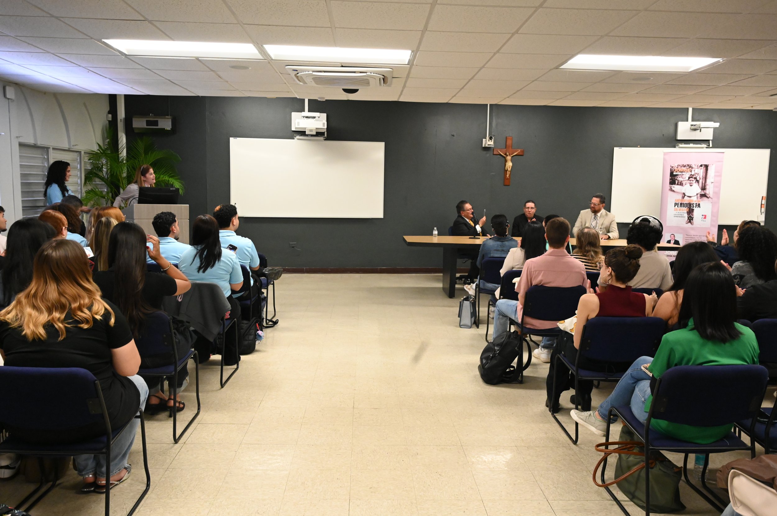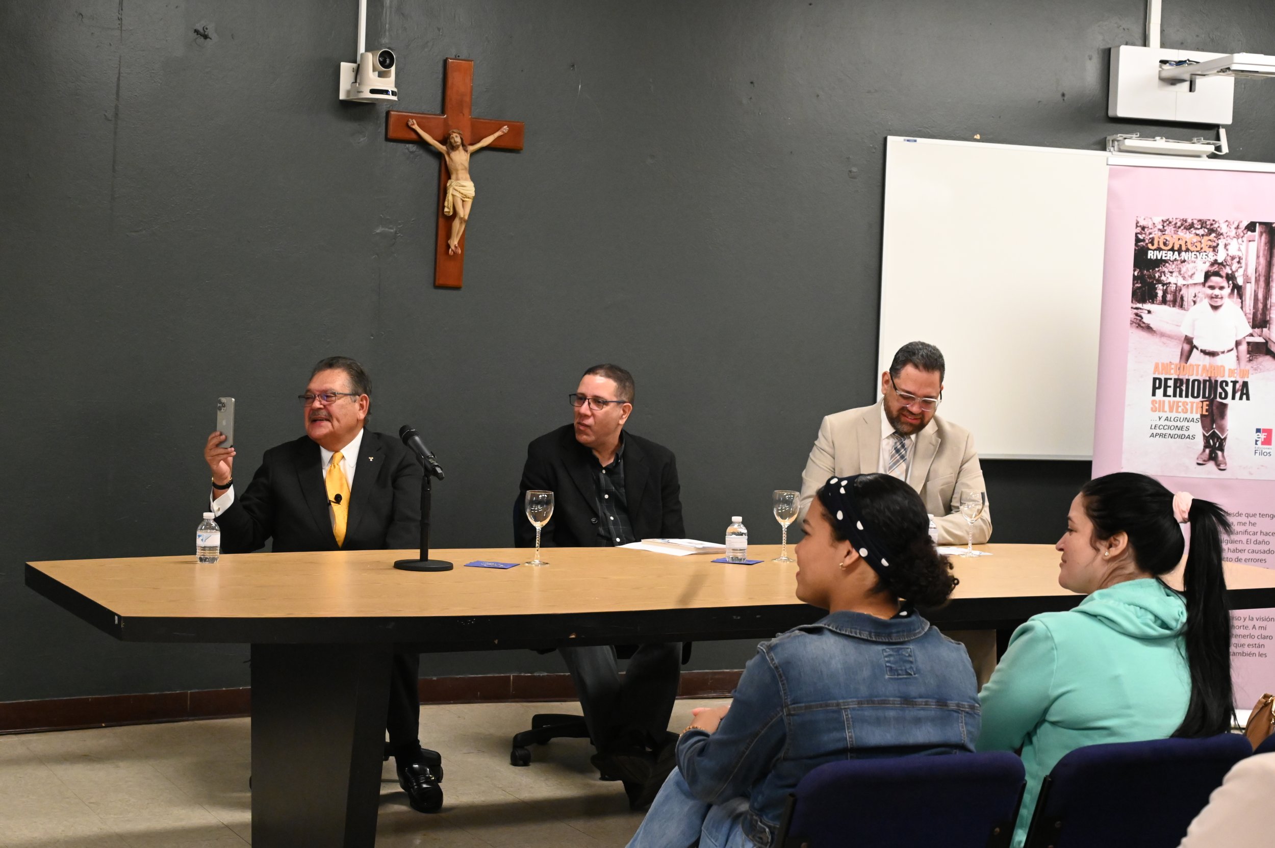 Estudiantes del Colegio de Administración de Empresas, en particular alumnos de Comunicaciones y Producción de Radio y Televisión de la Pontificia Universidad Católica de Puerto Rico, tuvieron la oportunidad de adentrarse en el mundo del periodismo desde una perspectiva vivencial con la presentación del libro Anecdotario de un periodista silvestre y algunas lecciones aprendidas, del veterano periodista Jorge Rivera Nieves.