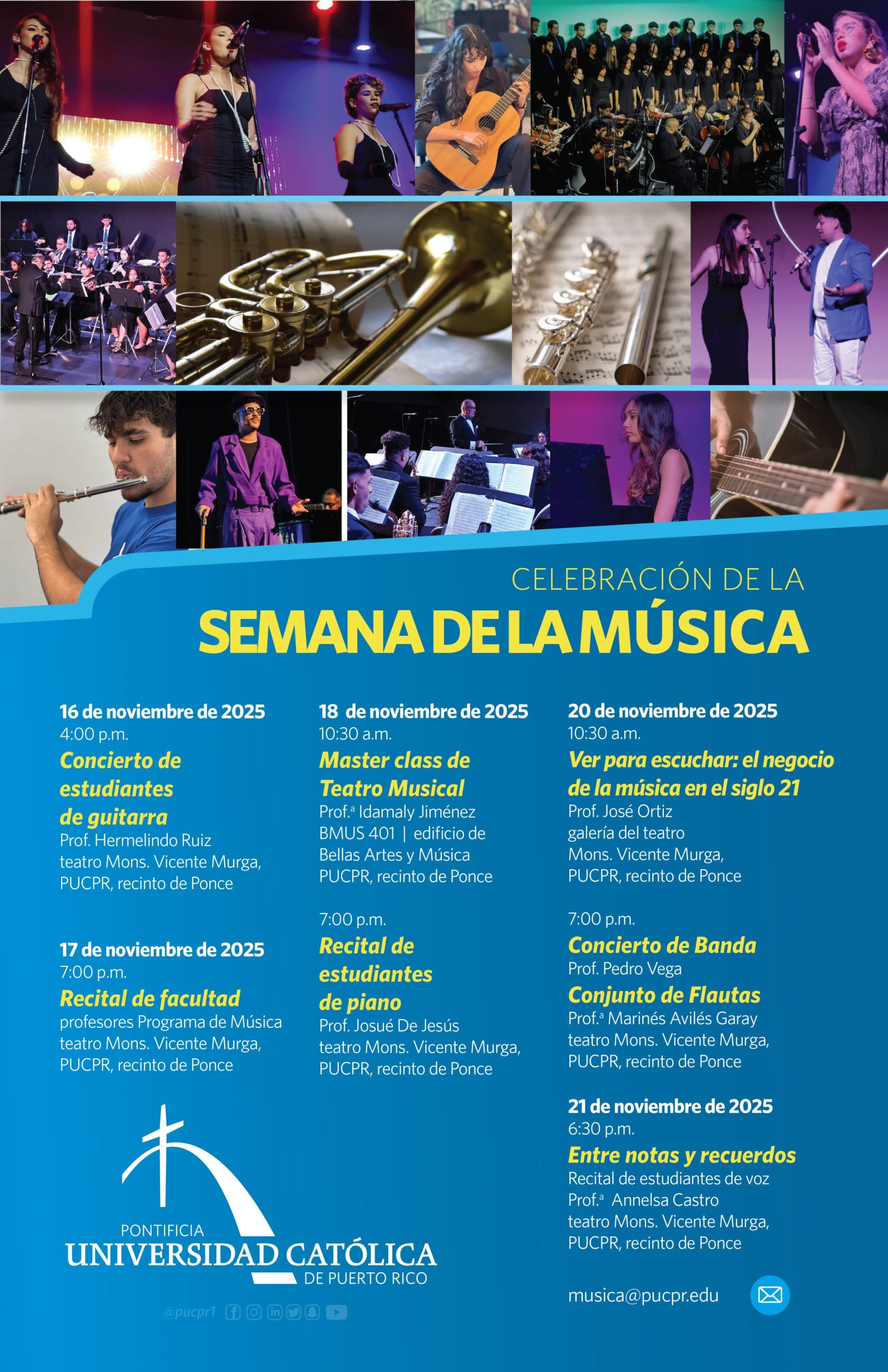 Donde hay música… lo hay todo By celimer_torres@pucpr.edu | November 6, 2025 Celebramos la Semana de la Música en la PUCPR Posted in General ← Music for ConnectionConexiones del éxito: encuentro con empresarios y gobierno →