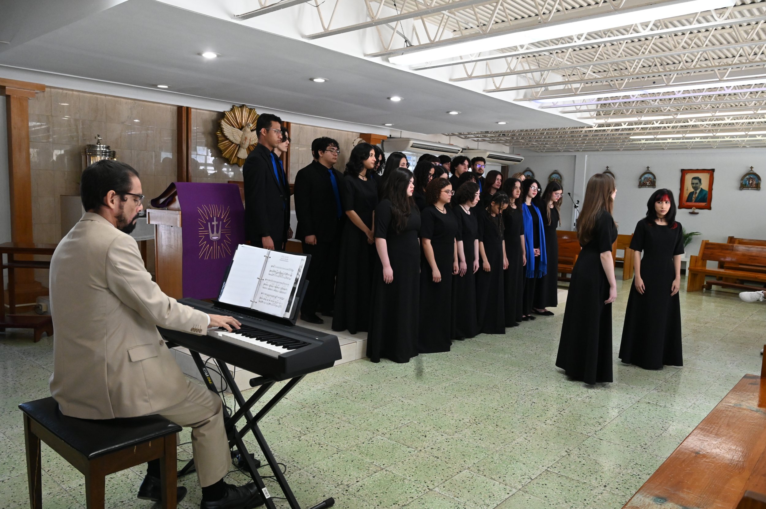 “Como iniciativa del doctor Hugo Adame, director del Coro, se presentó un concierto reflexivo con un repertorio de música sacra que han estado trabajando durante este año académico para ofrecer a toda la comunidad durante la Cuaresma un momento de oración y reflexión inspirado  en la música sacra, que la música sacra es esa música que ha sido compuesta para las celebraciones litúrgicas y que brota de una experiencia de fe.  Es un momento de, por medio de la belleza de la músicapoder entrar en contacto con Dios, poder meditarpoder reflexionar.  La música es el lenguaje universal, así que expresar nuestra fe es un lenguaje común y un lenguaje hermoso“,  indicó el P. Arnaldo Ortiz Dominicci, capellán de la PUCPR.